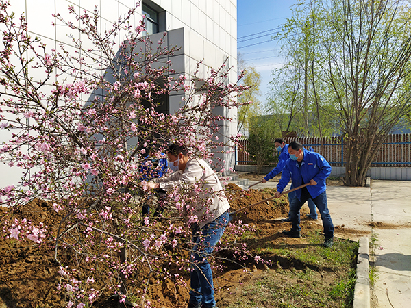 隨后,志愿者們又從罐區(qū)附近的荒地里,挖了兩棵野桃樹栽在了大樓西邊的空地里。滿樹粉紅的花朵,在春風(fēng)里搖曳,好似在訴說著感謝,讓甲醇開票大樓又增添了一道美麗風(fēng)景。