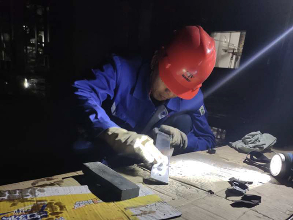 9月26日晚8點半,乙二醇車間工藝主任楊磊正打著手電筒磨靶板?!霸蹅?3工段A系列S40管道今天打靶合格,這些都是大家每天加班加點才有的結(jié)果……”楊主任邊磨靶板邊鼓勵著大家。