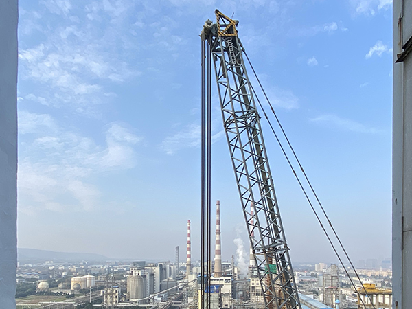 工人正在吊出解析塔(DA501)塔板