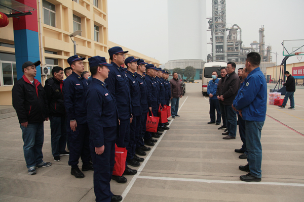 “張?jiān)鰬?zhàn)董事長(zhǎng)去彬州慰問(wèn)咱們的職工,我們四位代表公司領(lǐng)導(dǎo)班子向大家表示節(jié)日的問(wèn)候,希望大家在班上搞好安全生產(chǎn),下班回家過(guò)一個(gè)幸福祥和的春節(jié)?!泵康揭惶帲T曉宏總是這樣把公司的問(wèn)候送給堅(jiān)守崗位的同志。在行政保衛(wèi)部,看見(jiàn)隊(duì)列整齊、口號(hào)洪亮、斗志昂揚(yáng)的消防戰(zhàn)斗員,馮曉宏激動(dòng)地說(shuō):“今天是大年三十,張董事長(zhǎng)特委托我們向本部職工進(jìn)行慰問(wèn)。你們放棄了與家人的團(tuán)聚,堅(jiān)守崗位,保衛(wèi)公司平安,在此,向大家道一聲——大家辛苦了!”