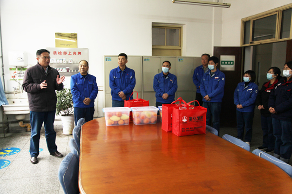 馮曉宏一行先后來(lái)到質(zhì)量監(jiān)督檢驗(yàn)部、一期控制室、供排水車(chē)間451崗位、動(dòng)力車(chē)間脫鹽水控制室、雙甲車(chē)間三期控制室等十多個(gè)部門(mén)和崗位進(jìn)行慰問(wèn)。每到一處,他們和在崗員工親切握手、交談、噓寒問(wèn)暖,仔細(xì)詢(xún)問(wèn)值班人員節(jié)日期間的工作和生活情況,對(duì)大家“舍小家、顧大家”,認(rèn)真堅(jiān)守工作崗位表達(dá)了衷心的感謝。