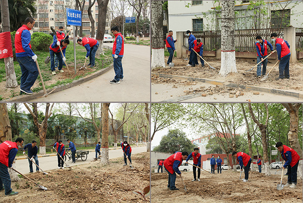 行政保衛(wèi)部的志愿者為行動提供了圓頭鐵鍬、平頭鐵鍬、鎬頭等勞動工具,在物業(yè)管理人員的指引下,志愿者分組在渭河娛樂中心門口兩側(cè)、實業(yè)公司辦公樓北側(cè)、渭河學(xué)校大門口面對的南北兩側(cè)等同時開始建筑垃圾清理、土地平整等工作。對于前期施工在綠化區(qū)域里留下的磚頭瓦塊等建筑垃圾,志愿者們不怕臟和累,徹底清理、撿拾到路邊,用垃圾清運車?yán)?。為了配合小區(qū)車輛亂停整治,一組志愿者配合物業(yè)開挖、設(shè)立了多處的文明停車提示牌。