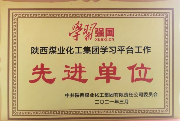 2021年3月公司榮獲學(xué)習(xí)強(qiáng)國(guó)陜西煤業(yè)化工集團(tuán)學(xué)習(xí)平臺(tái)工作先進(jìn)單位